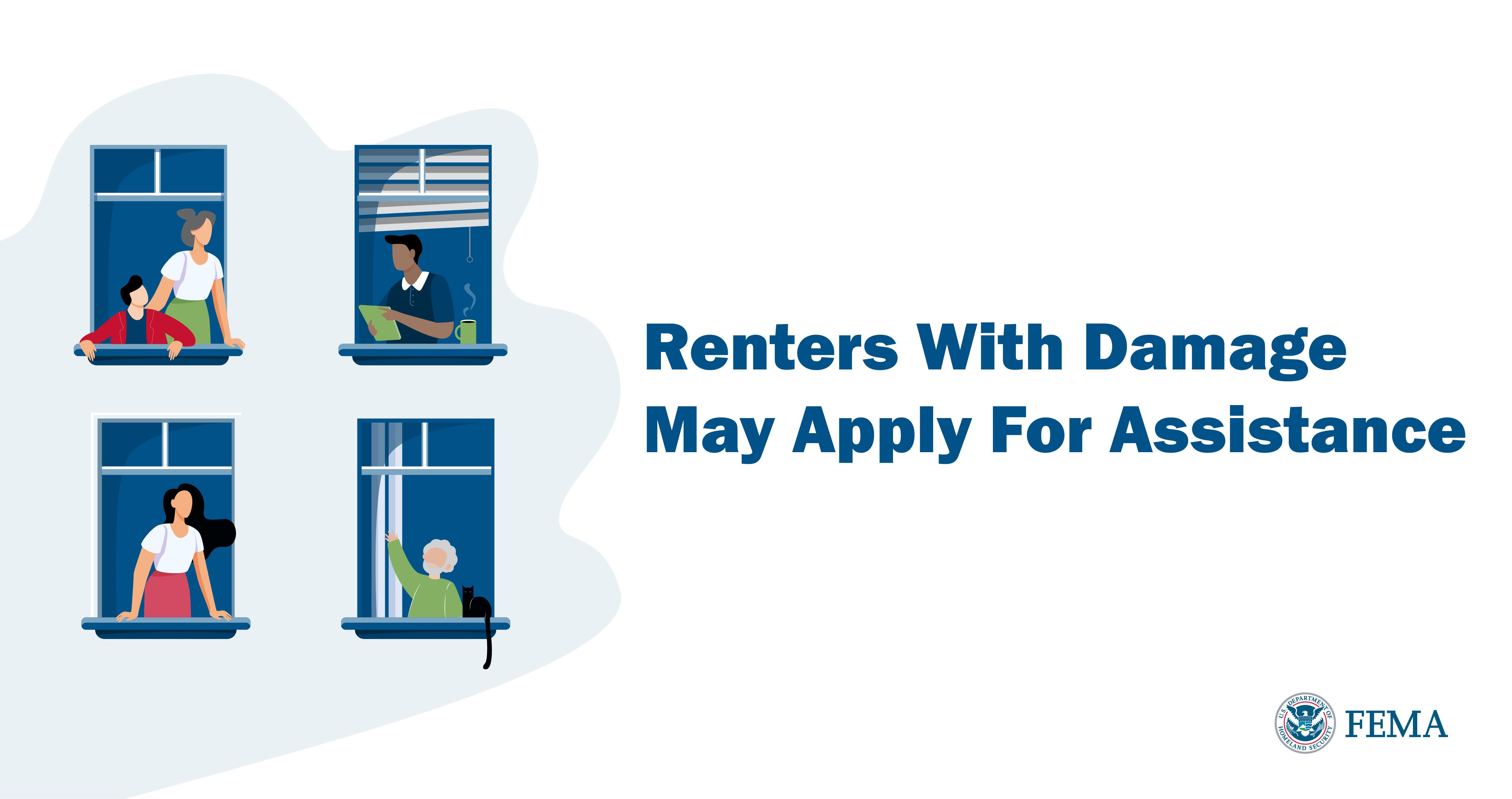 FEMA - Renters with Damage May Apply for Assistance 09/05/2021 04:20 PM Renters with damage may also apply for disaster aid. View larger »